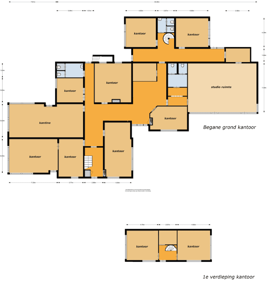 Naar huidige indeling zijn voor de kantoorfunctie de volgende ruimten in gebruik van totaal 613 m²: